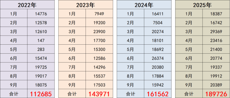 结合2022年-2025年1-9月份二手房成交趋势来看,今年1-9月二手房月度成交总量,为近四年最高位!