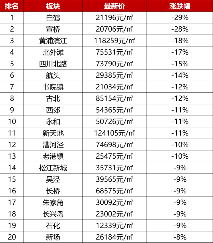 比如静安大宁金茂府成交价由原先16万+/㎡,降至最新11万+/㎡,历史跌幅超过30%;