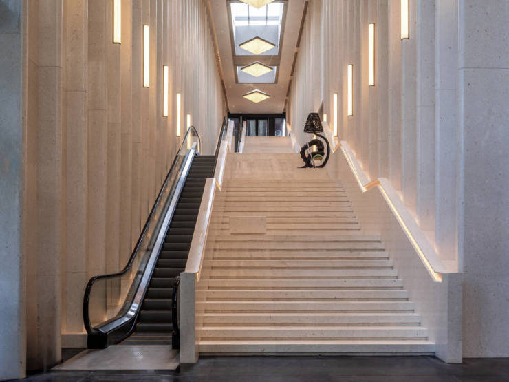 除了难以复制的地段优势,万科在产品上也再次实现了突破与创新。高福云境引入 GAD、英国 1508 London、意大利 Lissoni & Partners等国际专业设计天团,尝试以国际化设计视角融合在地文化肌理。设计过程中,团队保留了项目所在区域历史建筑的原有空间格局,从石库门建筑中提取天井、里弄等传统空间元素,通过现代极简设计手法进行重构。在建筑形态上,采用错动竖向体块切分、转角切角收分、弧形塔冠及标志性金色阳台等设计语言,形成兼具历史语境与现代感的建筑立面,探索历史街区风貌与超高层居住形态的协调共存模式。