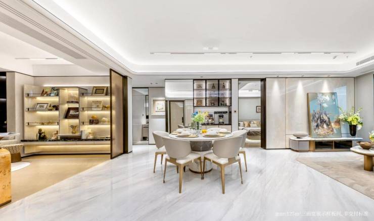 全屋集成海量收纳系统,配备多功能餐边柜、定制橱柜与双面镜柜等,拓展相当于一间卧室的储物容量,容纳生活美好想象,让家越住越从容。