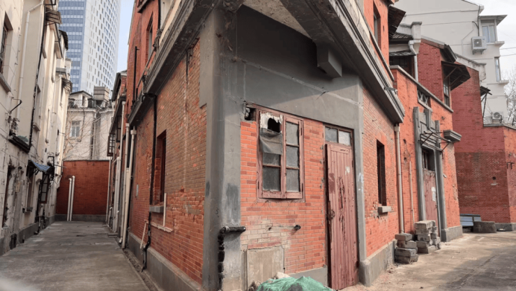从实地看到,地块内部暂时处于非净地状态,石库门里弄已经封闭,无人居住,原有老旧建筑尚未拆除。据悉,该地块属于南京西路愚园路零星旧改项目,2024年,通过规划调整为二类住宅组团用地。