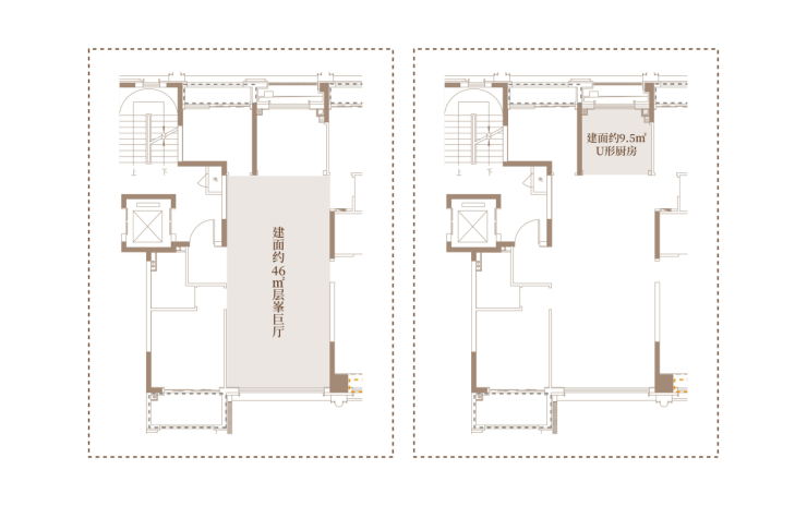 建面约46㎡层峯巨厅,是休憩时光的老友聚会,也容纳孩子们尽情玩耍小跑,更足以摆下独立恢弘圆桌,盛纳家族欢宴;U形厨房奢配嘉格纳5件套,更将水槽区域台面的进深尺寸加宽到65cm,大幅提升使用率,让厨房不再是单一的烹饪空间,而是充满温情与爱意的美学之境。