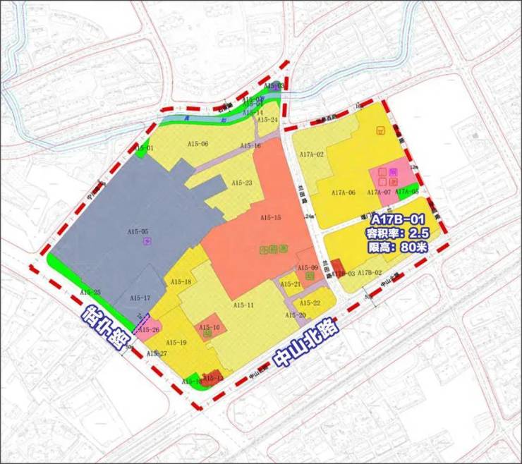调整后,A17街坊新增两宗三类住宅用地,其中A17B-01地块将率先挂牌出让。该地块用地面积19518平方米,容积率2.5,建筑面积48795平方米,限高80米。