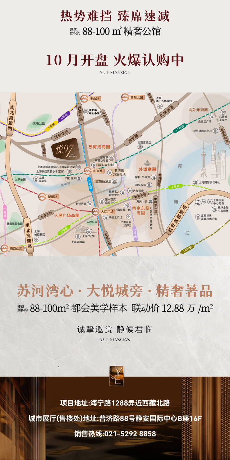潮奢,是生活的底色静安内环、都市核芯的繁盛幕后,是宁谧的生活本真。举步即达的大悦城,将都会的摩登与活力无缝对接;而归家之后,则是隐于苏河静处的精奢居所,让生活收放自如,张弛有度。