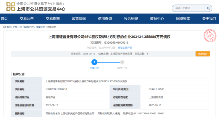 2025年11月17日,上海市公共资源交易中心发布一则国有产权项目成交公告,中建三局所属中建壹品商置联合湖北联投成功竞得上海建绽置业有限公司95%股权及转让方对标的企业363131.355880万元债权,成交总价达374271.12588万元。