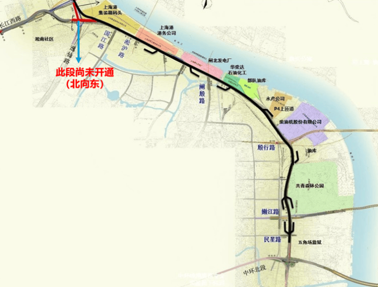 军工路快速路新建工程,北起军工路-逸仙路立交,南至中环翔殷路立交,共涉及宝山、杨浦两区,全长约7.3公里。工程采用“高架主线+地面道路”的总体方案,其中,高架主线为新建工程,现正式命名为“军工高架路”。目前高架主线除军工路逸仙路立交NE匝道(北向东)未建成外,其余路段已基本具备通车条件。