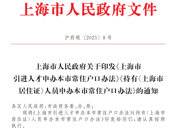 为进一步发挥人才在促进新时代上海经济社会高质量发展中的核心作用,完善与上海经济社会发展相适应的人才引进政策体系;同时为深化本市户籍管理改革,完善居住证制度,持续优化营商环境,吸引人才来沪,市政府近日印发《上海市引进人才申办本市常住户口办法》《持有〈上海市居住证〉人员申办本市常住户口办法》,于12月1日起施行。