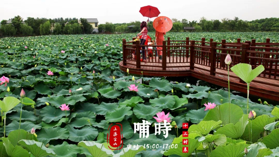 申时,光线渐渐柔和,热度逐渐退却,在清雅妍丽的荷花氤氲的香味中,一日的紧张繁忙都得以纾解,这个时辰的顾村不争不抢成为了宝山的主角。
