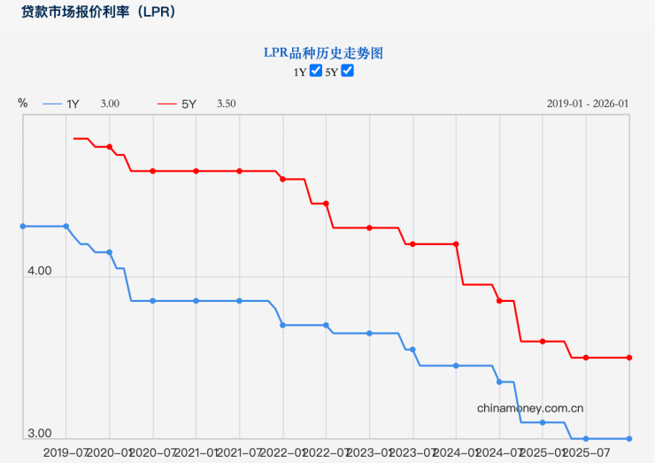 1月20日,中国人民银行授权全国银行间同业拆借中心公布,2026年1月20日贷款市场报价利率(LPR)为:1年期LPR为3.0%,5年期以上LPR为3.5%,均较上期维持不变。这也是LPR连续8个月维持不变。