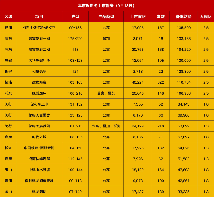9月13日,网上房地产公示本周过会名单,共计16个项目,将推出1942套房源,合计供应面积约23.58万㎡。这个数量达到最近数月以来新高,上演“疯狂星期六”。
