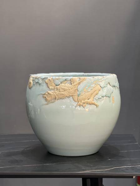 ——青釉雕刻龙缸