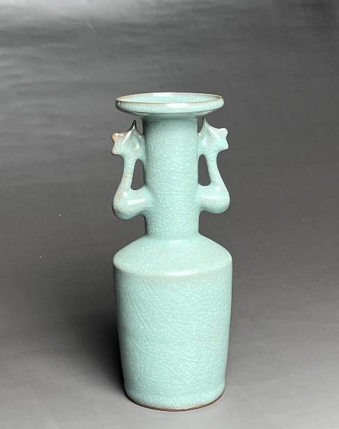 出自青瓷传承大家王志伟之手,凝聚其二十余年纯手工制瓷的匠心。王志伟深耕龙泉青瓷领域,坚持纯手工创作,成品存世不足百分之十的严苛标准,尽显对瓷艺的极致追求。梅瓶哥釉开片自然,釉色温润古朴,延续宋瓷简约雅致的风骨,更承载着他对龙泉青瓷文化传承与创新的深厚情怀。