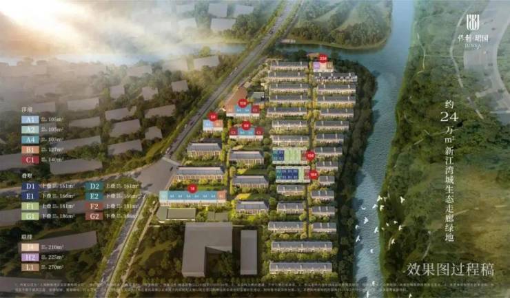 产品线完整覆盖,洋房近一半房源总价低于1200万,千万级入住新江湾低密墅区;叠拼24套,总价2050万起,上有露台、下有花园,实际使用面积最高达150%;联排3100万起,一线滨水景观C位,仅3套供应。