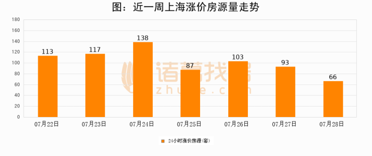 根据诸葛找房数据显示,上海24小时涨价房源量为66套,较07月27日减少27套,环比下降29%。与此同时,涨价房源占比小幅回落,对于购房者来说是一个入市窗口期,购房者可抓住时机入市。