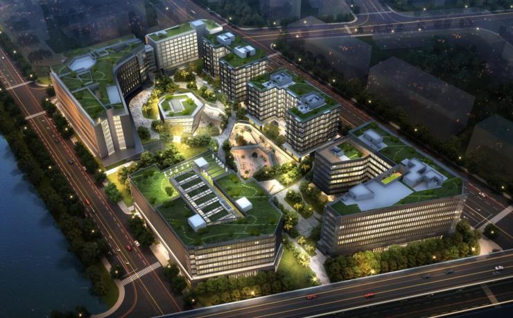 以整个地块条件得天独厚,中央有城市绿带,造就了中央公园核心景观的优势。中央公园作为办公园区的环境主体,结合独立庭院绿化、平台绿化、屋顶花园,使园区栋栋有庭院,处处见绿色,打造清新宜人的办公环境,营建办公人员身边的绿色。