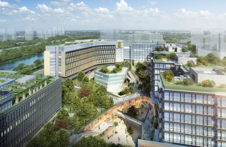 除了创造舒适的办公区域,成为国际性总部的办公基地,它的核心区域是办公,同时配套包括高端的丽思卡尔顿酒店、万豪AC酒店,多元商业和高配比的停车位。