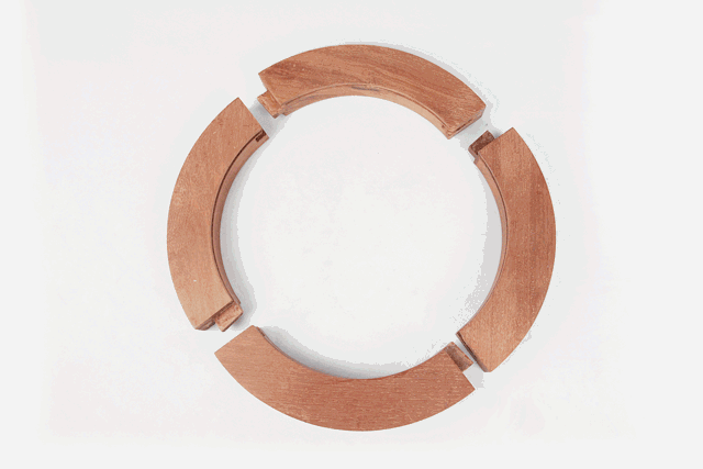 攒边打槽装板,如系圆形的边框,即圆桌、圆凳、香几面等,用弧形弯材打槽嵌夹板心的边簧。弯材般为四段,攒边的方法除用楔钉樺外,常用逐段衔夹的造法,即每段一端开口,一端出榫,逐一嵌夹,形成圆框。其打槽、装板、凿眼、安带等与方形边框基本相同。