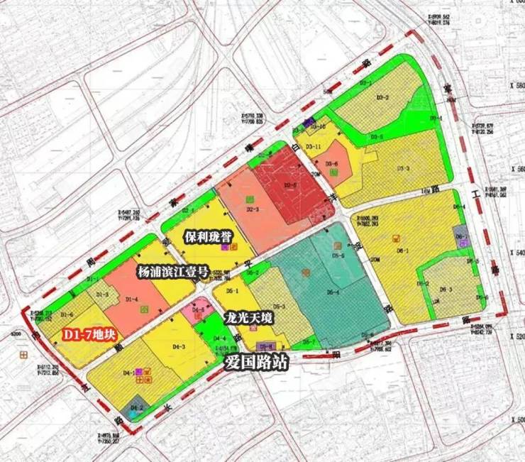 该地块位于杨浦区内中环间,紧邻"爱国路三兄弟"(保利珑誉、龙光天境、杨浦滨江壹号),距离地铁12号线爱国路站仅约400米,交通便利。