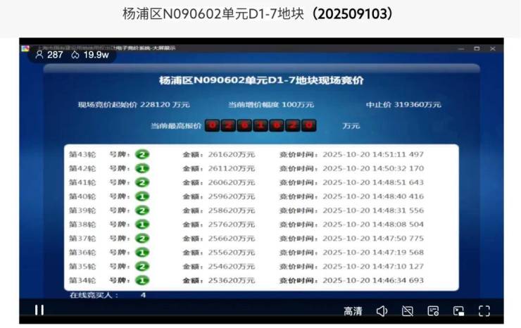 杨浦区N090602单元D1-7地块成为本轮土拍中参拍企业最多的地块,共吸引中铁建、保利置业、北京建工&东亚新华、越秀&城投4组竞买人参与竞拍。