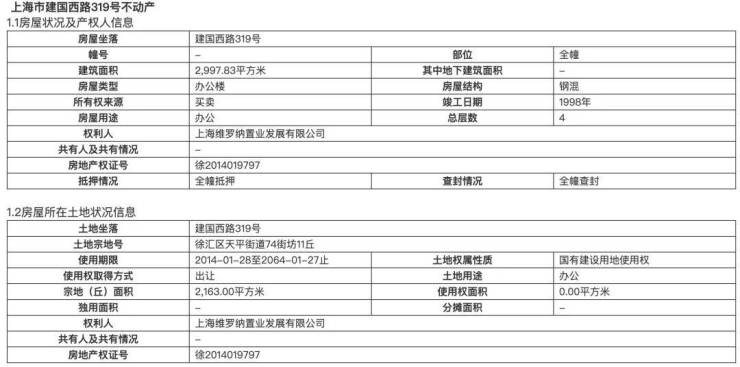 拿下该处物业后,华董集团将其用于企业高端会所。然而好景不长,2024年底,上海市第三中级人民法院受理维罗纳置业破产清算,其持有的建国西路319号独栋洋房,即是在此背景下被拍卖。当时起拍价3.46亿元,评估价4.948亿元,但最终被暂缓。