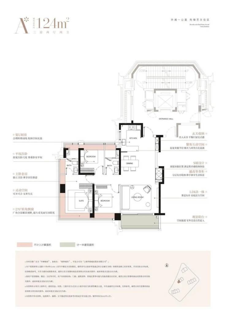 建面约124㎡经典的三房布局,高效满足主流家庭的居住需求,每一房间均设计有观景飘窗,让外滩的天际线成为日常生活的背景。创新的S墙设计与南向次卧“可开可合”的灵活隔断,在有限面积内实现了功能与美感的精妙平衡。