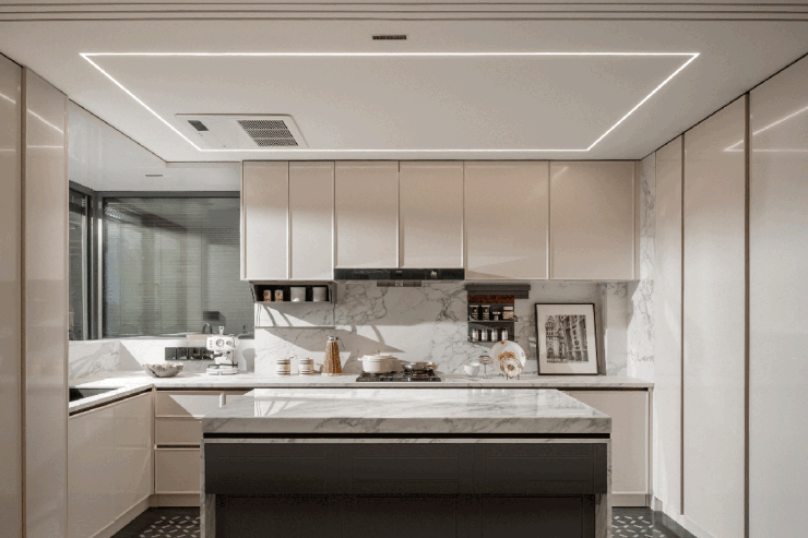 厨电模块选用德国嘉格纳专业设备,结合三重排烟系统、四合一净水系统与智能温控,将厨房从功能空间升级为家庭社交的核心场域。