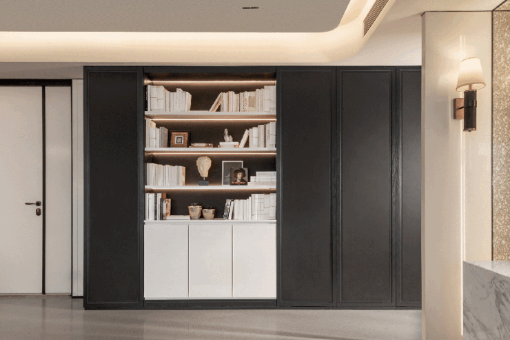 收纳模块遵循“藏八露二”原则,实现全屋系统化规划,入户配备除湿杀菌鞋柜,厨房、卫浴、卧室均按使用场景精准分区,165㎡及以上户型实现全屋配备,真正达到拎包入住标准。