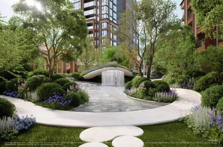 4号楼占据社区约3200平方米的核心园林主轴,园林内部精选美国红枫、细叶芒等特色植物,结合水景,在城市核心区构建出一片具备自然野趣与艺术感的园林空间。