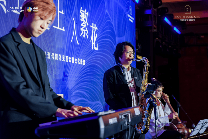 中粮·北外滩壹号媒体见面会暨文化盛宴开始之际,悠扬的萨克斯旋律穿越时空,中粮大悦城首个壹号系历史风貌项目、“中粮好房子”产品体系最新力作——中粮·北外滩壹号,正式与上海各家权威媒体首次相见。大悦城控股华东大区公司常务副总经理杨森先生致辞,欢迎各界来宾朋友;大悦城控股华东大区公司总经理助理兼中粮·北外滩壹号项目总经理李洋先生为各界来宾分享中粮·北外滩壹号一路走来的匠心之旅。