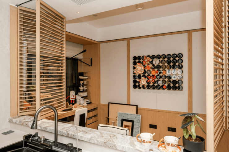 项目引入 “全屋系统化收纳”解决方案,针对玄关、客厅、厨房、卫浴等不同场景,精细化规划了从150mm到600mm不同深度的收纳体系。真正实现 “大面积,精致化”的质变。