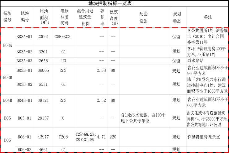 其中,B03B-01地块为三类住宅用地,面积约36065平方米,容积率2.53,建筑面积约91244平方米,商业配套不低于900平方米;B04B-01地块同为三类住宅,用地面积约39121平方米,容积率2.52,建筑面积约98585平方米,商业面积不低于600平方米。真如新增两宗住宅用地,将会提供超18万方住宅。
