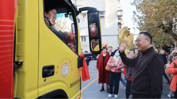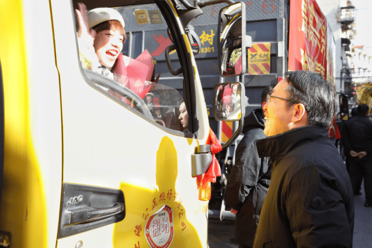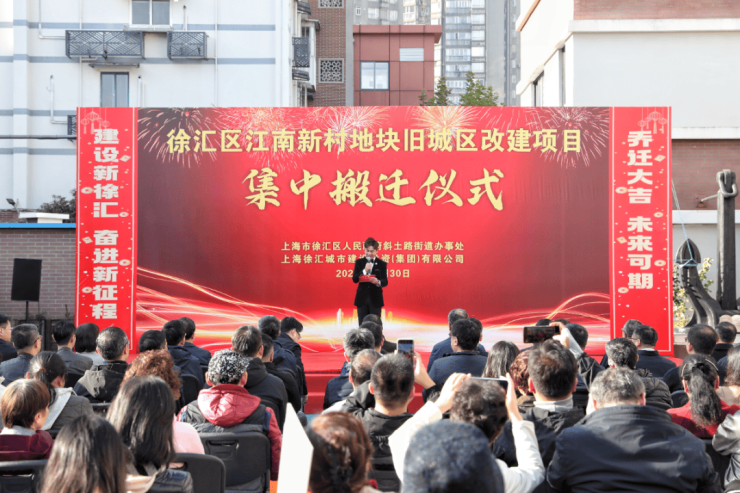 11月30日上午,徐汇区斜土街道江南新村内锣鼓喧天、红绸飘扬——12辆披挂着“乔迁大吉”彩带的搬场车整齐列队,随着一声“发车”,满载家具与期盼的车队缓缓驶出,标志着江南新村地块旧城区改建项目集中搬迁正式启动。
