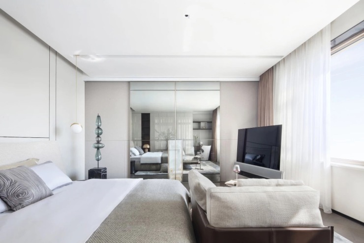 设计团队在进行空间改造时,充分考虑到上海城市文明与长江流域文化的融合,把面对黄浦江的较佳观景位置留给了主卧与书房套房,空间开阔,大气开合。
