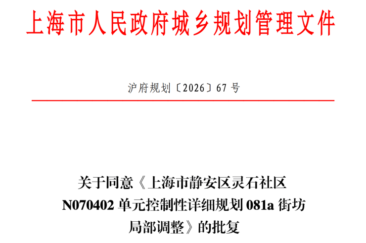 4月15日,静安区灵石社区N070402单元控制性详细规划081a街坊局部调整方案正式获批。原为商住办混合用地的地块调整为纯住宅用地,另涉及一宗四类住宅用地调整,两宗地块预计新增住宅建筑面积约12万平方米。