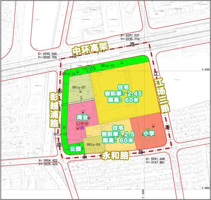本次调整范围为静安区灵石社区N070402单元081a街坊,具体四至为:东至江场三路、南至永和路、西至彭越浦路、北至汶水路,总用地面积约12.08公顷。