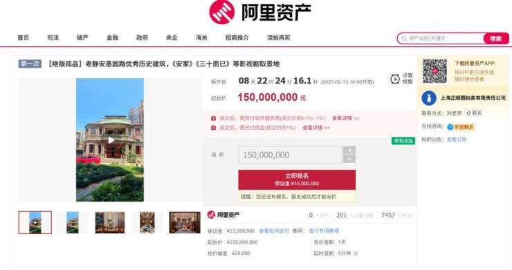 阿里拍卖平台上架一栋优质百年洋房,这栋位于上海愚园路的老洋房将于8月13日10点进行公开拍卖活动。