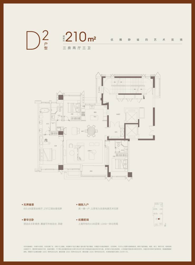 【3#210㎡户型】——南向俯瞰下沉式庭院,北侧私藏浮光池院。