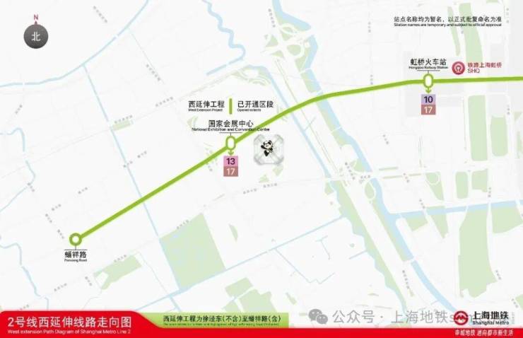 资料显示,上海地铁2号线西延伸段自国家会展中心站(不含)引出,至蟠祥路站,线路长约1.7公里,设车站1座。该工程于2025年6月取得信号安全证书,并进入空载试运行阶段,目前处于联调联试及附属结构装修阶段,计划于进博会前开通运行。