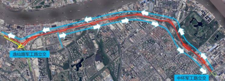 军工高架路全长约7.3公里,北起军工路-逸仙路立交,南至中环翔殷路立交,如一条动脉将新江湾城环抱,与逸仙路高架、中环共同构成高效路网系统,由中环军工路立交前往逸仙路军公路立交,通行时长由当前25-30分钟缩短至10分钟以内,约30分钟直达浦东三件套,区域交通能级实现从量到质的飞跃。(信息来源:市交通委)