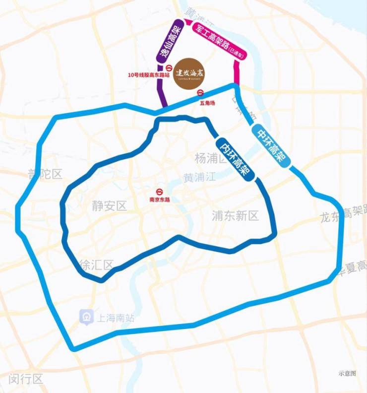 军工高架路开通,新江湾城跻身中内环!中环、内环、三轨、军工高架路等立体路网环伺,极速纵横上海主城!