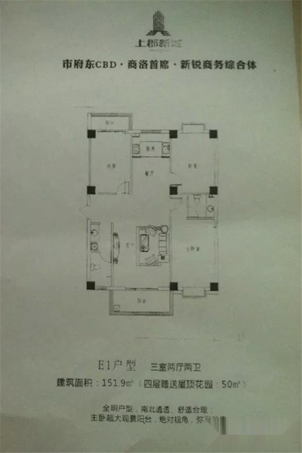上郡新城小区,建址于商州区商州区民生路,是市府东CBD.商洛首席.新锐商务综合体地段,小区对面是全兴紫苑小区;向东100米华润万家,向南200米天河景生活区,向西100米新时代商文化科科技馆。户型面积约142.93㎡---165.2㎡,分为三室一厅两卫;三室两厅两卫两种户型。