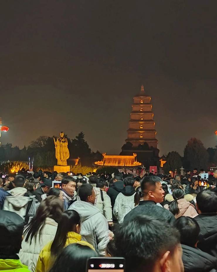 •核心数据:常与大唐不夜城整体统计;2025年全年超8600万人次(含周边街区);北广场日均10万+;国庆/春节峰值显著(2025年国庆单日峰值57.3万,集中在19:00–22:00)