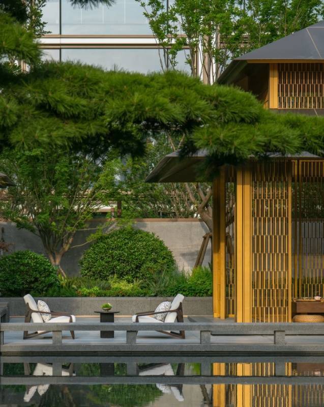 3. 立面为全玻璃幕墙+铝型材装配式,融合唐风飞檐元素