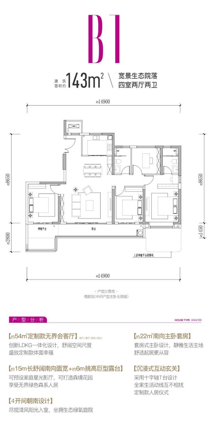建面约128-143㎡ 纯正第四代住宅