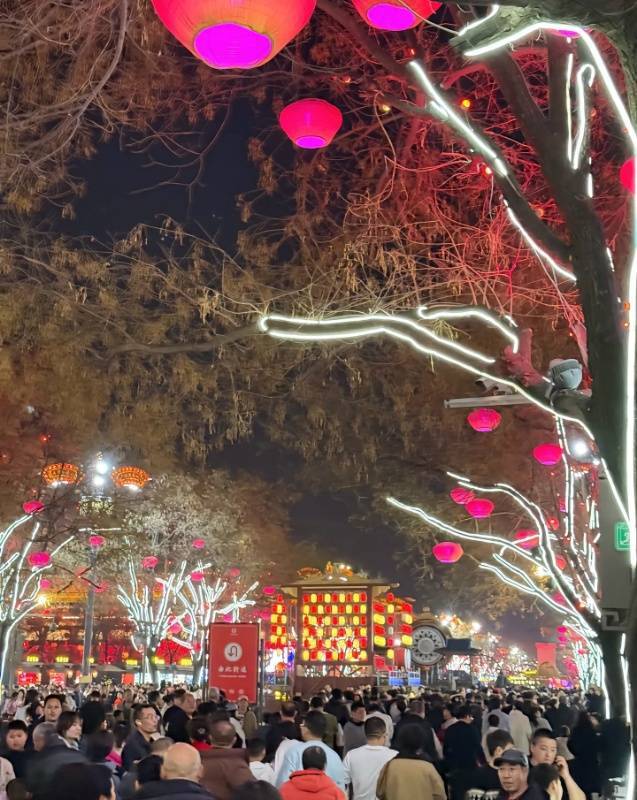 1. 区位与规模:西安市雁塔区曲江新区,北接大雁塔南广场,南至开元广场,全长2.1公里开放式步行街;无门票、24小时开放,核心亮灯/演出18:30–22:00;地铁3/4号线大雁塔站步行5分钟可达。