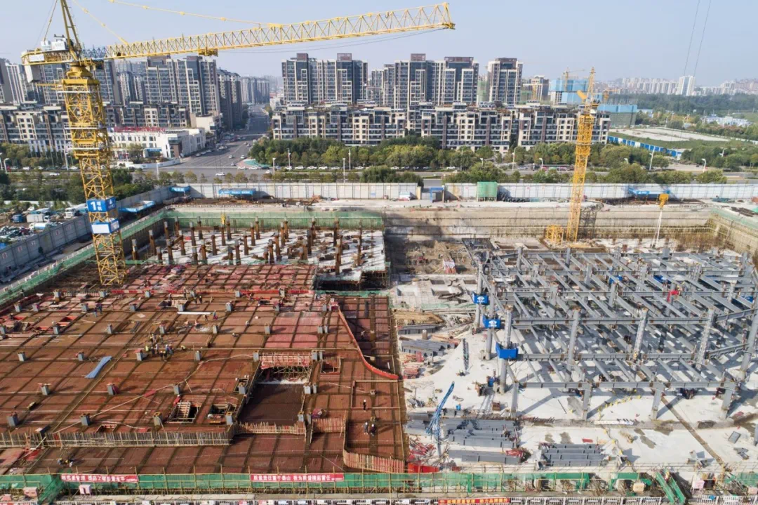 位于示范区的市三馆一中心(图书馆、方志馆、展示馆、市民中心)目前项目正在进行主体施工。记者 崔 坤 摄
