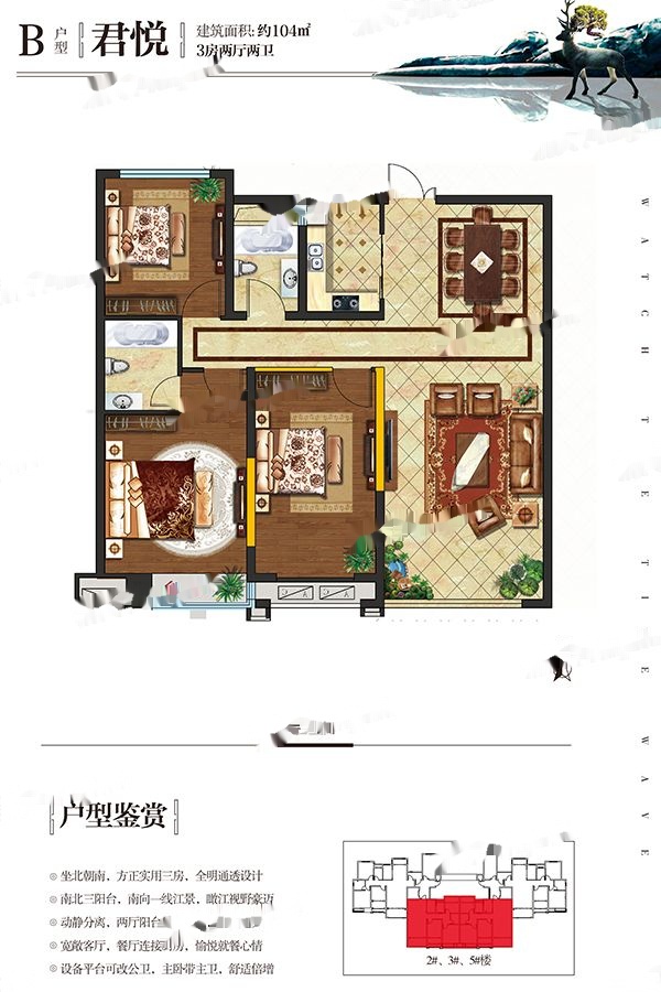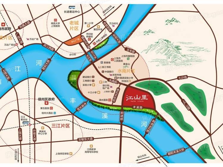 兴华·江山里总建筑面积7.8万平方米。兴华·江山里由四幢33层全高层通透板式美宅组成,建筑沿丰溪河畔一字排开,总户数518户。 户型产品设计以100-125㎡的三房为主,满足市场刚需客户需求。户户朝南,户户沿江,一线江景。360度无遮挡居家环境,南面丰溪河,清风自然入室;北望黄金山、森林公园,畅享大自然清新氧吧。入户花园,南北双阳台,超高赠送空间,超大使用面积,多重景观舒适生活。