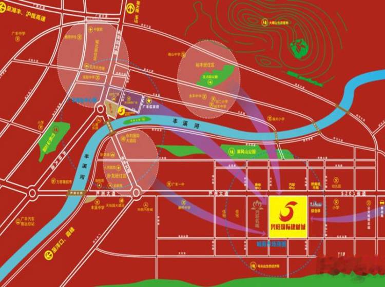 上饶市广丰区地处浙赣经济发展轴前沿,城区共有三大出口:向南直通福建、向北抵达浙江、向西深入江西腹地。兴旺国际建材城雄踞芦洲大道,南邻乌尖山路、东靠东山路、西通兴旺路,项目路段连接S201省道,扼守广丰向南的门户位置,是广丰城市通往南部十个乡镇、30多万人口的主要交通要道,也是通往铜钹山国家森林公园的必经之路。位处广丰具发展前景的市场商圈核心位置。 兴旺国际建材城项目占地面积103.4亩,总建面积近20万平方米,容纳建材家居专业市场、酒店、商住公寓三种建筑形态,体量庞大、气势恢弘采纳国内为先进的商业规划设计理念,独创全车道、双首层建筑形式,倾力打造第5代建材家居市场领导者。项目总投资10亿元,制定先进形态的专向建材市场模式,年交易额可达数十亿资金流,未来将是广丰的建材家居集散基地。 兴旺国际建材城项目经营业态涵盖陶瓷卫浴、家具家俬、五金机电、地板门业、电器灯饰、油漆涂料、板材管材型材、仓储物流、餐饮娱乐、金融服务、商务住宿等全线经营种类;汇聚建材家居领域的各大国际国内品牌,品牌总代商、各级经销商云集,建成后将成为广丰体量、业种全、功能多、品牌强、经营优、空间的建材家居专业市场,以及一站式贸易批发总站。
