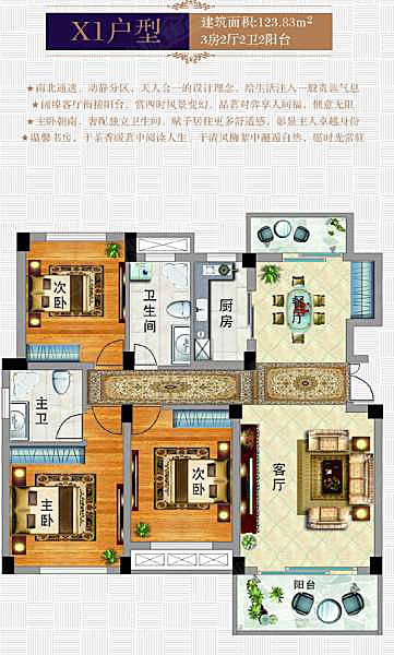 3室2厅2卫-玉虹·中央公园X1户型图