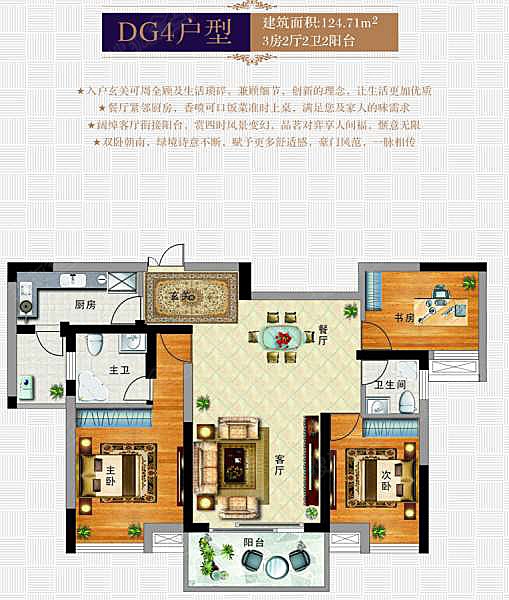 3室2厅2卫-玉虹·中央公园DG4户型图